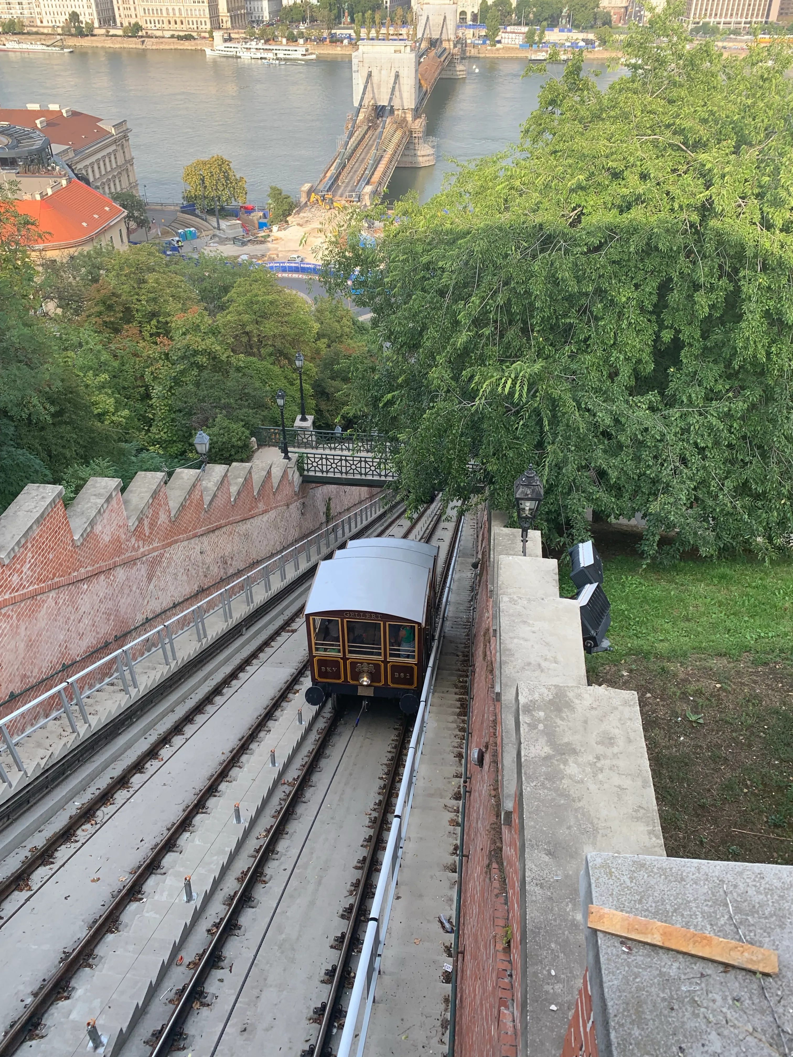 Our afternoon was spent together walking, but given how much I had already consumed, not eating! We walked over four kms (thanks apple watch for keeping track) down to and along the Danube to a funicular next to the Buda Castle. We both love a funicular ride and think we are now going to start a list on the number of funiculars we have visited) 3000 Florins ($A10 each) for the short ride to the top, but well worth it for the fabulous views over the river and the city 🙂