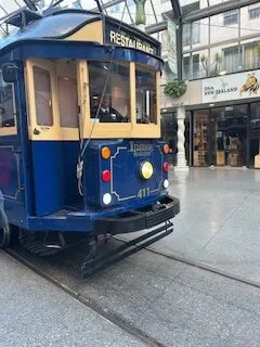 On Wednesday night, we boarded an old electric tram which had been converted into a mobile restaurant, having enjoyed ourselves on the same tram during our 2017 visit to Christchurch. In my opinion gimmicky restaurants often fail on the food side, but not so with this one. Both the food and service were excellent, and the atmosphere while travelling around Christchurch’s streets in an old tram was lovely.