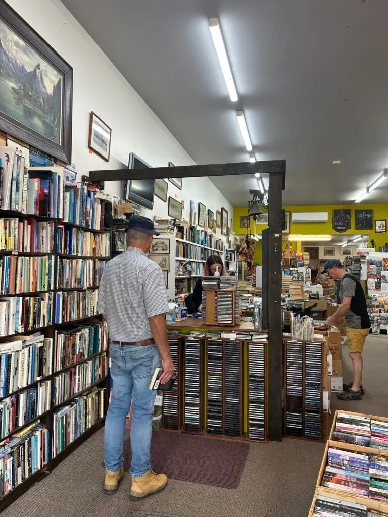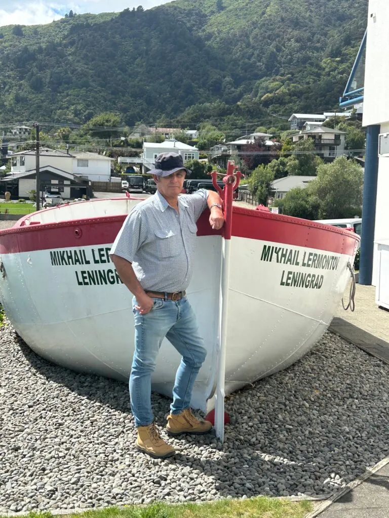 We’d booked a boat trip on the Queen Charlotte Sound mail run, which leaves from Picton at 2pm each day. We arrived in town around 1pm, so after walking past a very decent looking second-hand bookshop, we found a cafe where Dave had a toasted cheese sandwich and I had another bowl of Seafood Chowder. This one was bigger than the last, but not quite as tasty, although the toasted garlic bread on the side was particularly good. Since we still had 30 mins before boarding, we headed back to the bookshop we had passed, where Dave found a couple of books he’d been looking for. His bag started at less that 10kg but is rapidly increasing in weight!