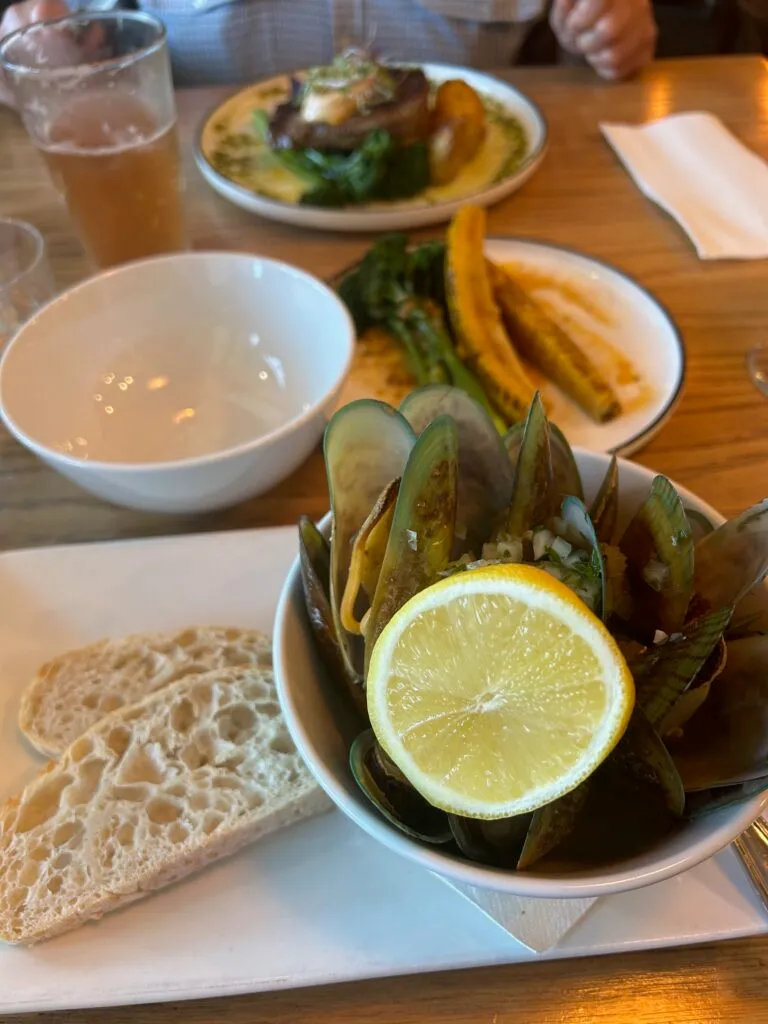 By the time we got back to Picton it was nearly time for dinner, so after a walk around we settled on a pub that had a good-looking menu and quite a few people inside. The service was fabulous right from the beginning with a lovely woman finding us a seat and serving us promptly. While in the Marlborough region I thought it best to have a local glass of Sauvignon Blanc. Dave ordered a steak, and I ordered an entree sized mussels (yes, again!) and a side of vegetables. Everything was incredibly good, but my favourite was the vegetables, a mix of charry broccolini and corn ribs tossed in a roasted garlic butter! We may have also taken the waiters recommendation to try the apple crumble 😉 Yum!