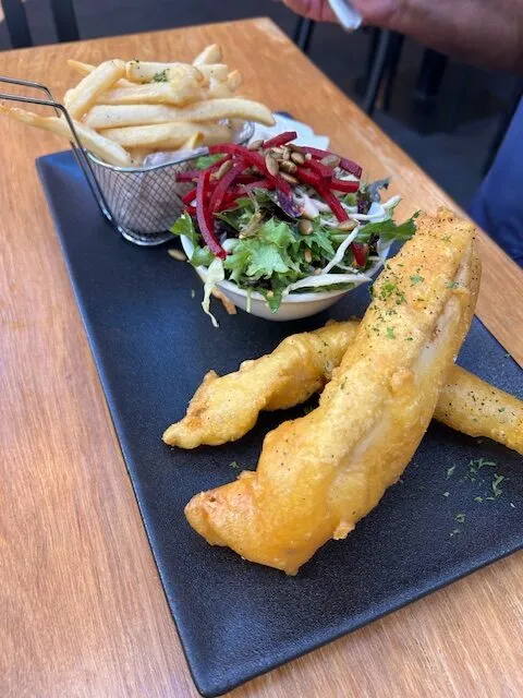 We haven’t actually had fish and chips since we arrived here which just didn’t seem right, so that’s what we had for dinner on our last night in NZ. It was pretty good – not the best ever but a lovely crisp batter and the accompanying salad which had julienne beetroot and walnut was particularly good. So often side salads are dull and boring!